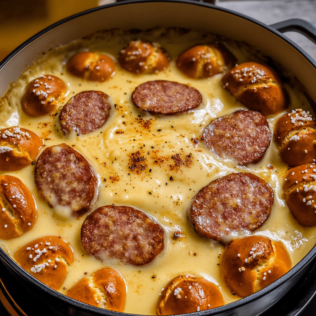 This recipe calls for a simple yet craveable lineup of ingredients, including Bavarian-style sausage, a blend of melty cheeses, crisp lager or ale, and a few essential spices to bring out the bold, comforting flavors. Pair it with homemade soft pretzel bites for the ultimate dipping experience.
