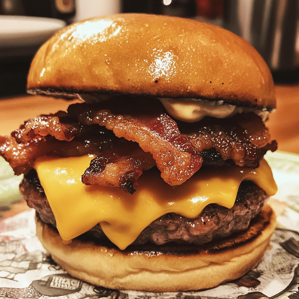 This Bourbon Brown Sugar Bacon Burger combines the sweetness of brown sugar with the rich flavor of bourbon, topped with crispy bacon for an indulgent burger experience.