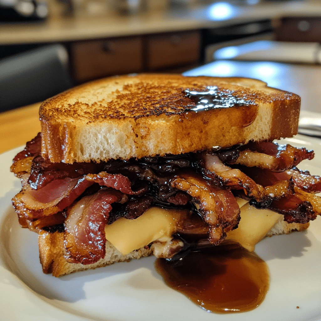 This Bourbon Glazed Bacon & Gouda Sandwich is a delightful combination of crispy bacon, creamy Gouda cheese, and a sweet bourbon glaze, all served on toasted bread. Perfect for brunch or a hearty lunch!
