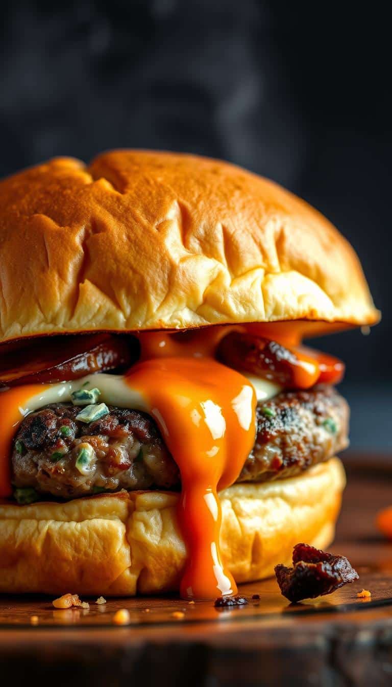 I toast brioche or regular buns in butter, then top patties with tangy blue cheese crumbles and a quick butter-warmed hot sauce that glosses every bite. The process is simple: form loose balls, smash once, cook 2–3 minutes per side, and finish with a glossy sauce.
