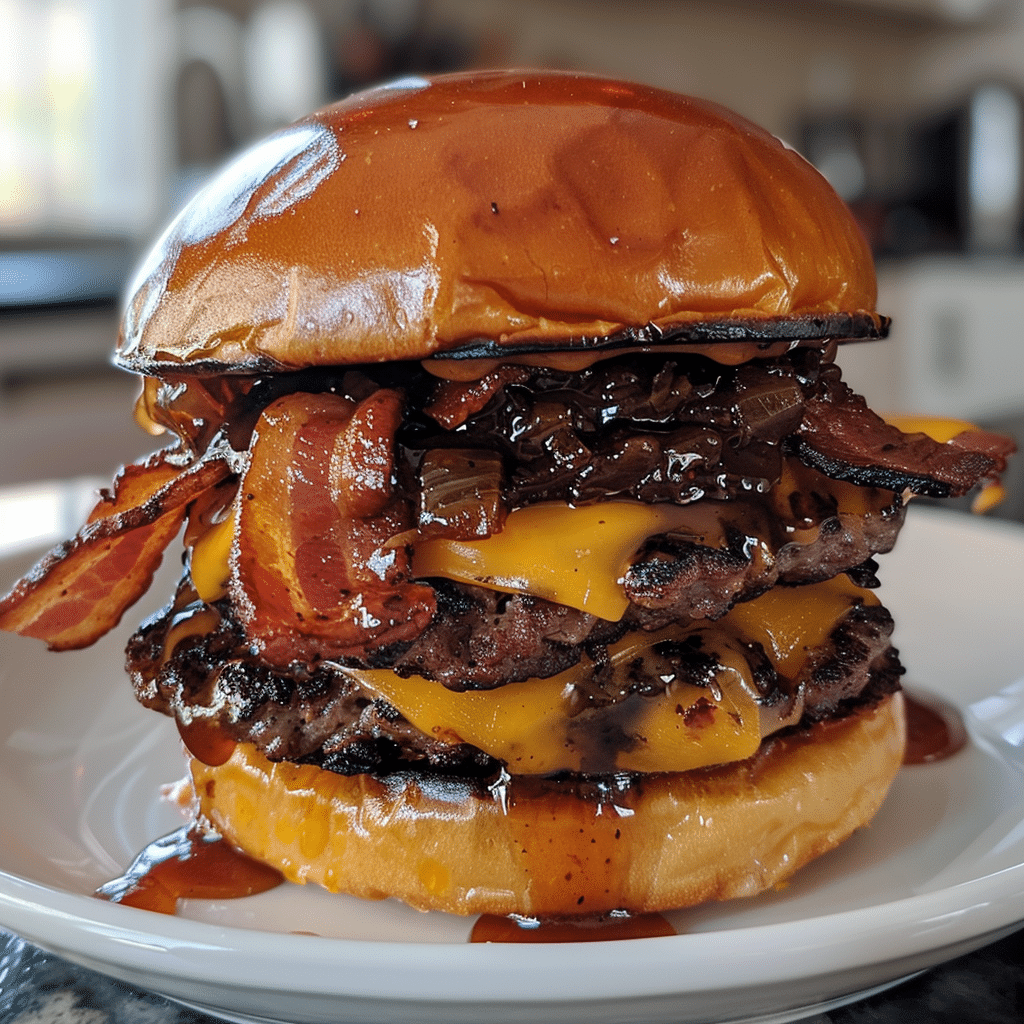 - Maple Bourbon Bbq Bacon Burger With Caramelized Onions