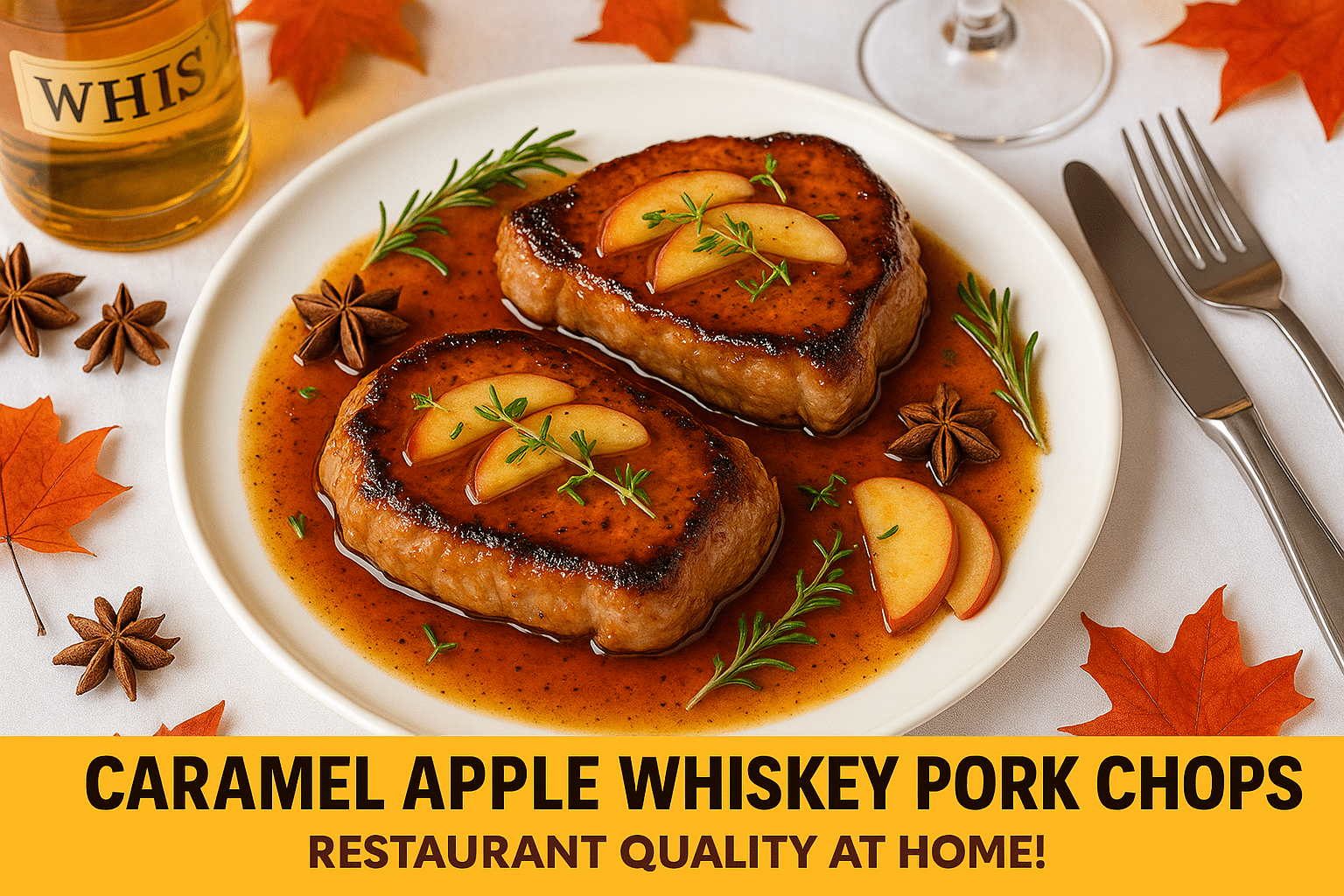 Elegant Caramel Apple Whiskey Pork Chops with Spiced Harvest Glaze combining fall flavors with restaurant-quality techniques. Crafted for discerning home chefs seeking sophisticated autumn dining with perfectly balanced sweet and savory flavors.