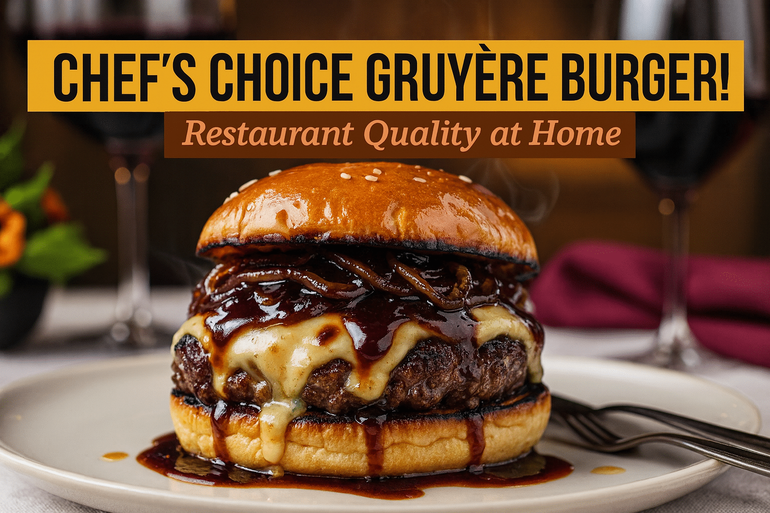 Caramelized Onion Gruyère Burger with Red Wine Reduction Glaze brings French-inspired elegance to your cookout. Crafted for discerning home chefs seeking restaurant-quality results with jammy caramelized onions, nutty Gruyère, and glossy wine reduction.