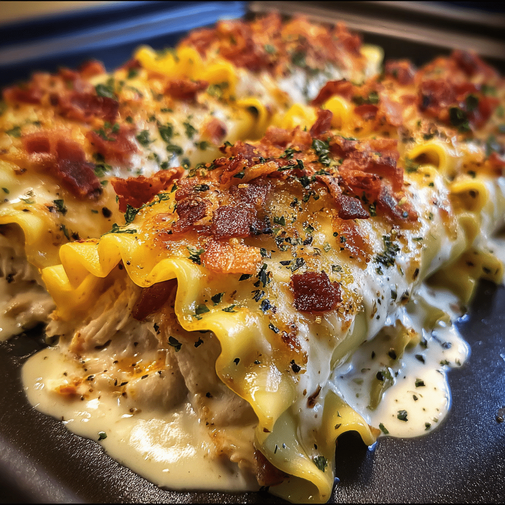 Looking for a new twist on lasagna? Try Cheesy Chicken Bacon Ranch Lasagna Rolls. It mixes chicken, bacon, and ranch seasoning with lasagna noodles and cheese.