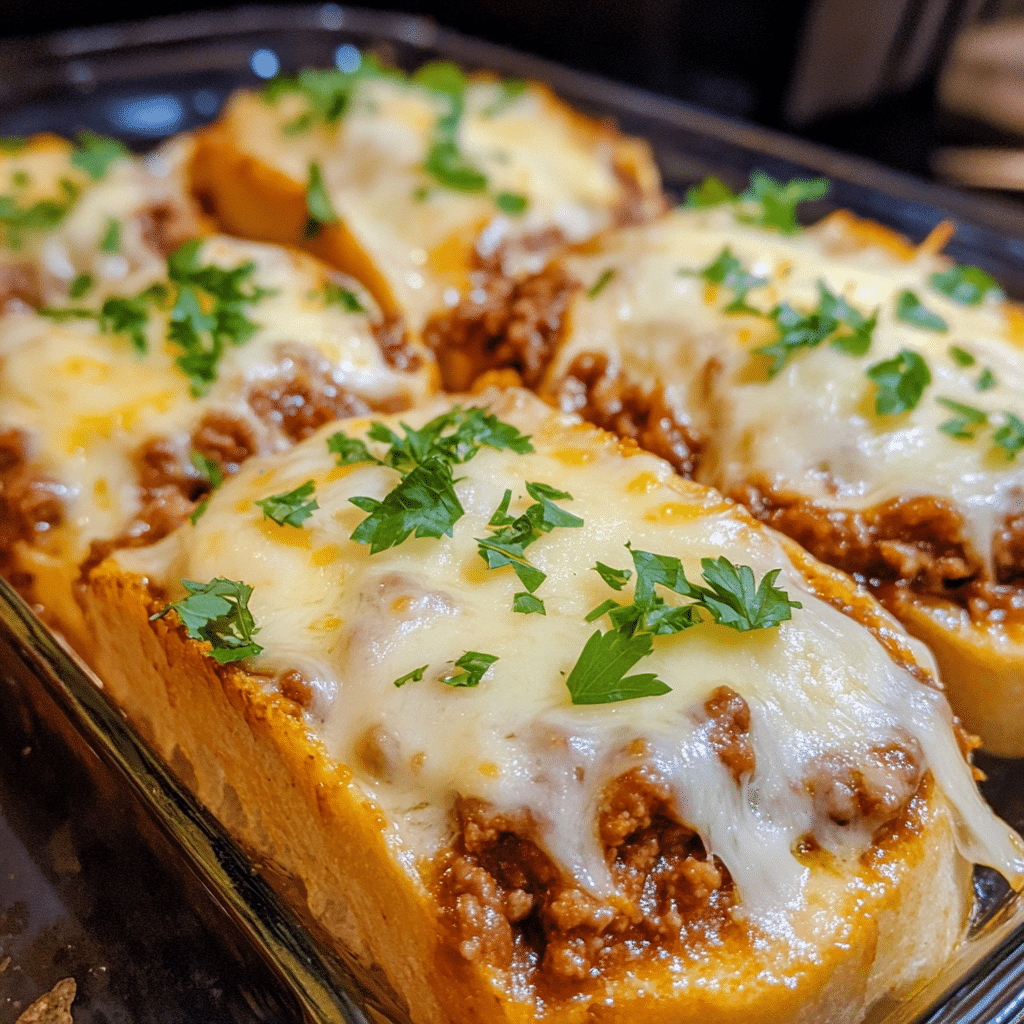 Indulge in this refined yet comforting Garlic Bread Cheesy Sloppy Joe Bake, where savory ground beef meets gooey cheese, all enveloped in crispy garlic bread.