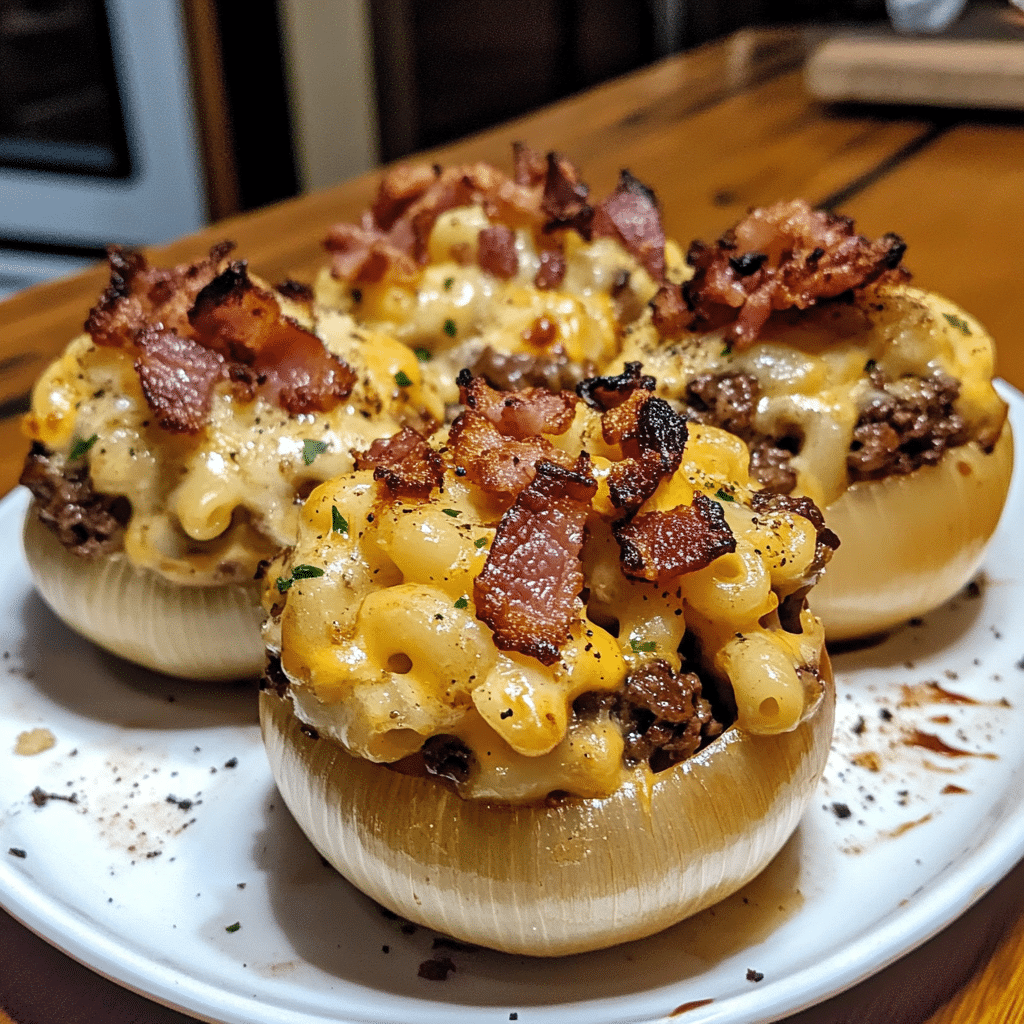 - Loaded Bacon Mac Cheeseburger Stuffed Onion Bombs