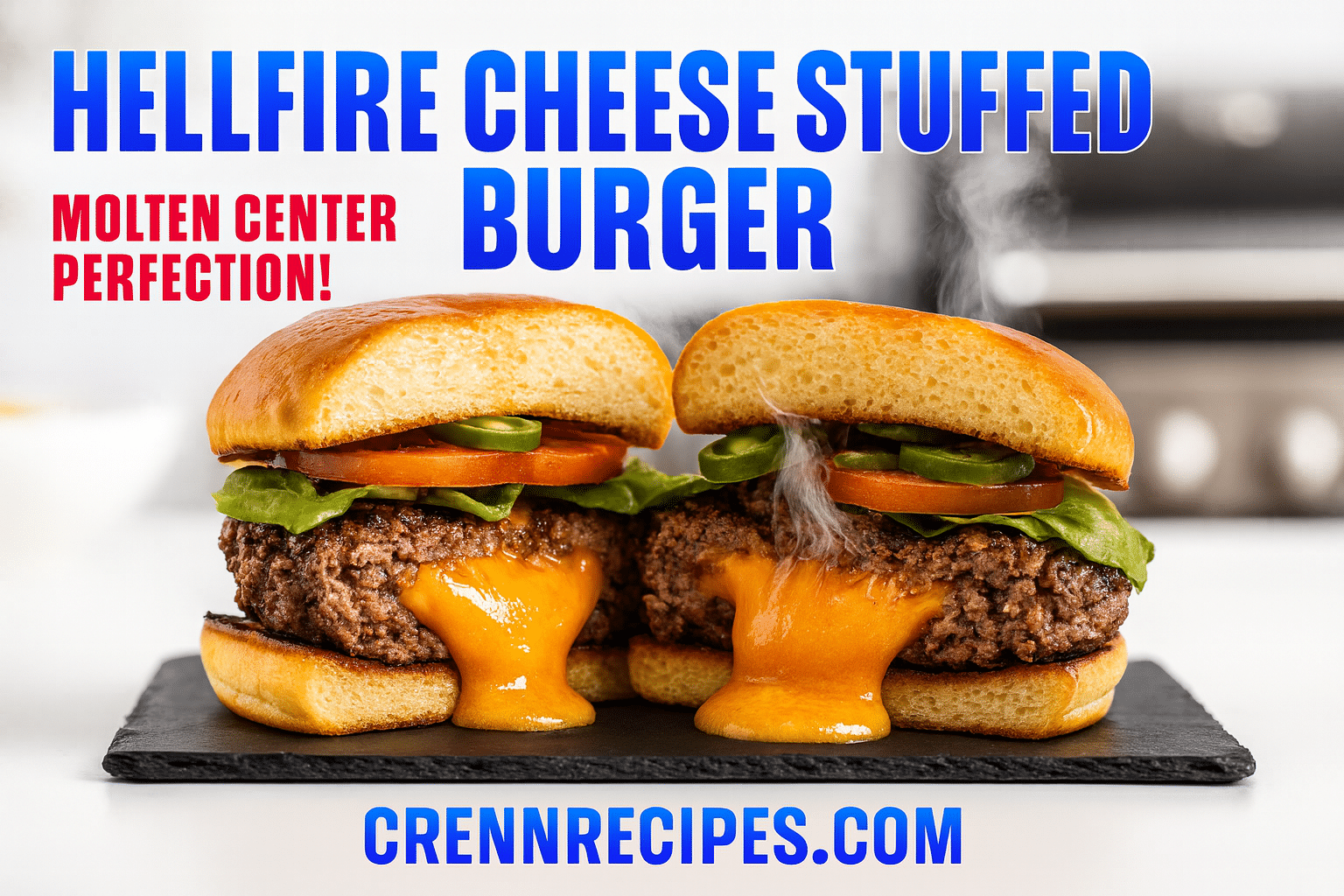 Bold, melty Hellfire Cheese Stuffed Crunch Burger with molten center perfection. Crafted for discerning home chefs seeking restaurant-quality results with a spicy, gooey core and crisp exterior.