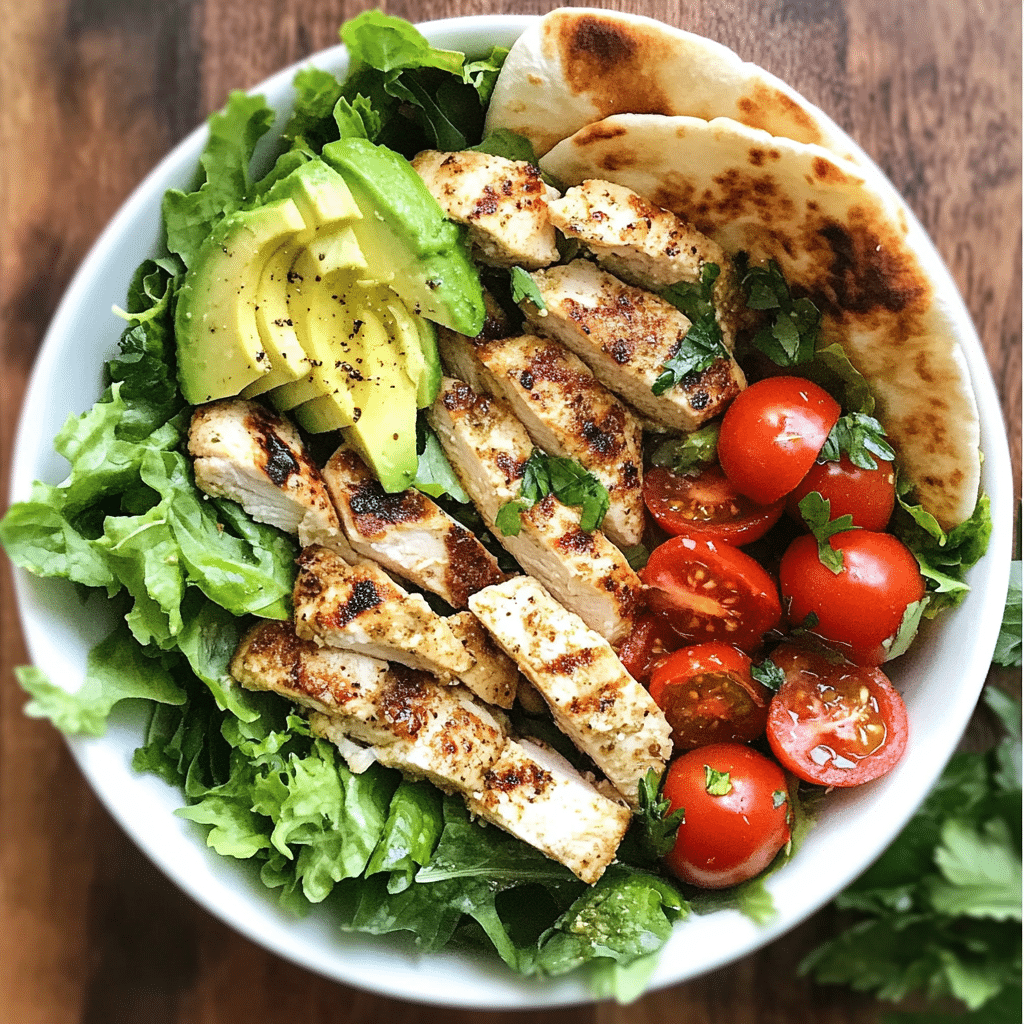 Begin by marinating the chicken in a flavorful blend of olive oil, garlic, oregano, and lemon zest. Allow the chicken to absorb these robust flavors for at least 30 minutes, or up to 4 hours for maximum taste. Next, prepare the fresh produce by washing and chopping the romaine lettuce, cherry tomatoes, and avocado. Set these vibrant ingredients aside, ready to be assembled into the pita bowls.