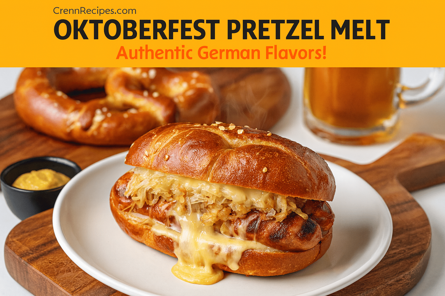 The Oktoberfest Sausage & Sauerkraut Pretzel Melt is a traditional German-inspired dish that combines sausage, sauerkraut, and melted cheese on a pretzel bun, perfect for Oktoberfest celebrations.
