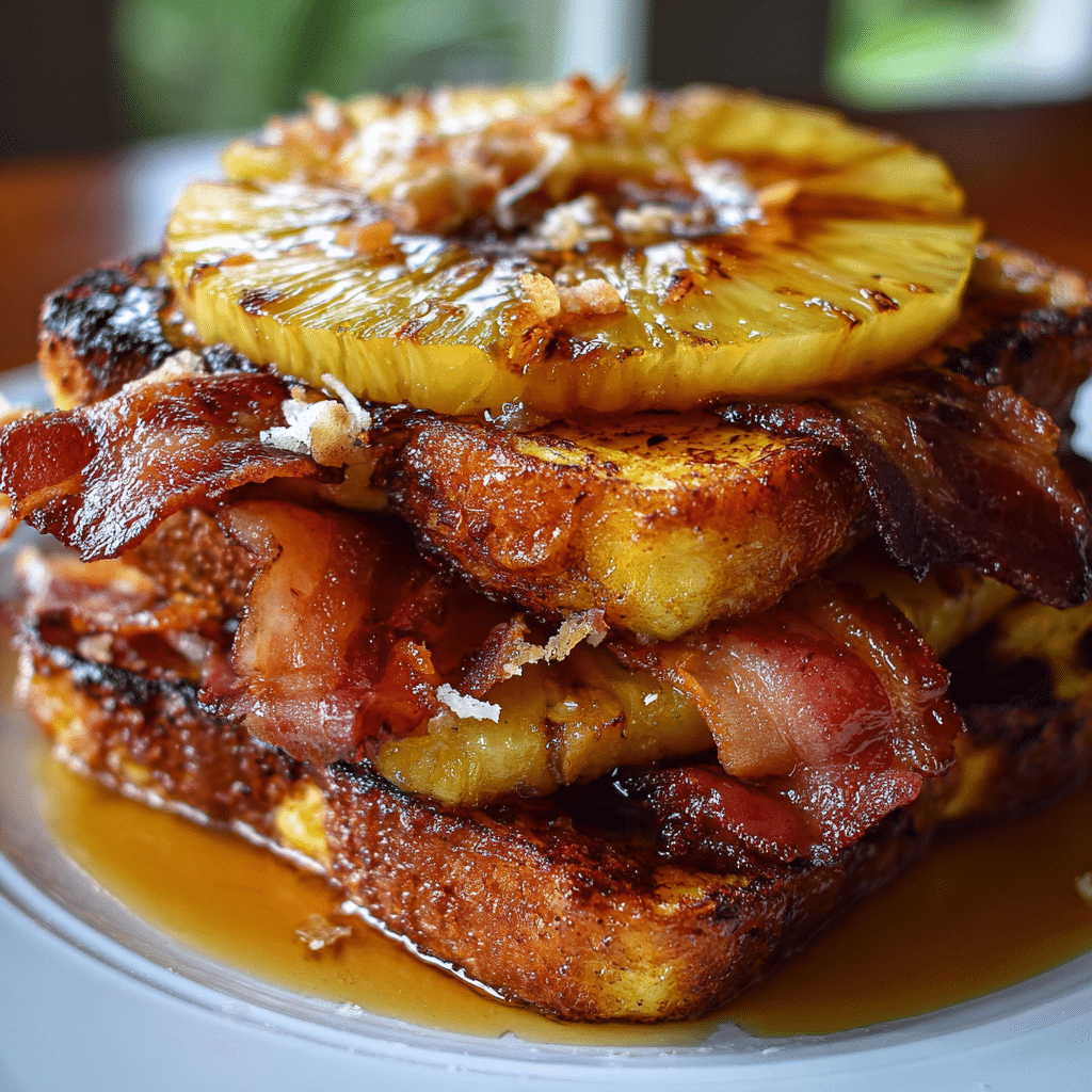 This tropical twist on classic French toast combines rum-soaked pineapple with crispy bacon for an unforgettable breakfast experience. Perfect for special occasions and weekend brunches.