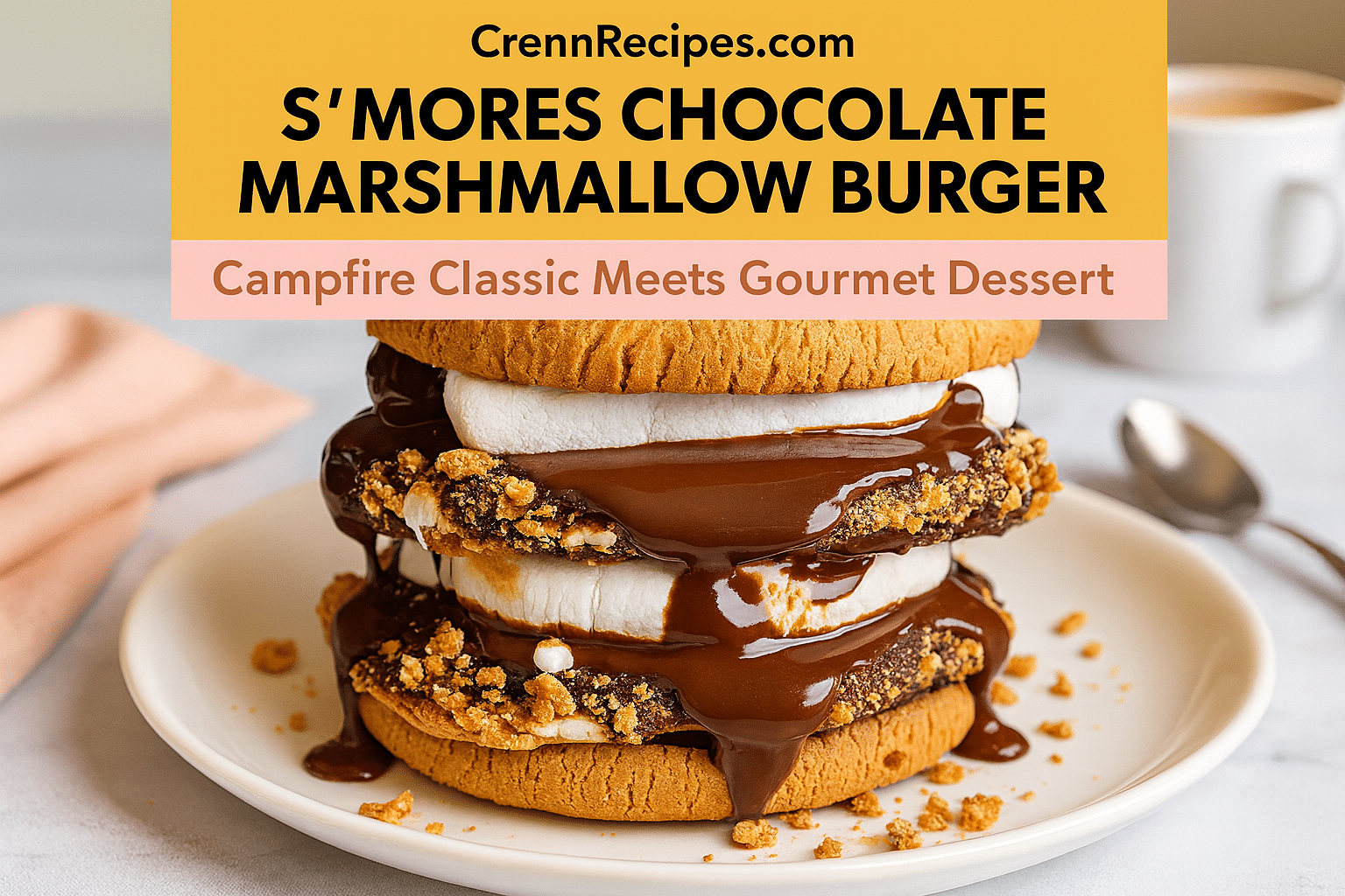 Pair the S’mores Chocolate Marshmallow Burger with a cold glass of milk, a cup of hot coffee, or a scoop of ice cream for a delicious dessert experience.