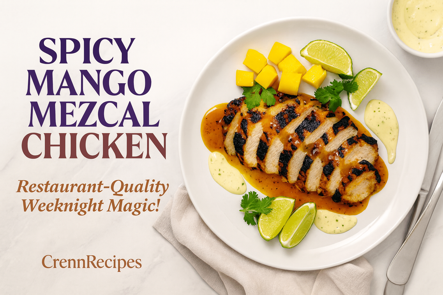 Bold weeknight grilled chicken with a bright mango-mezcal marinade and cool charred lime crema. Crafted for discerning home chefs seeking restaurant-quality results with pantry staples and fast preparation.