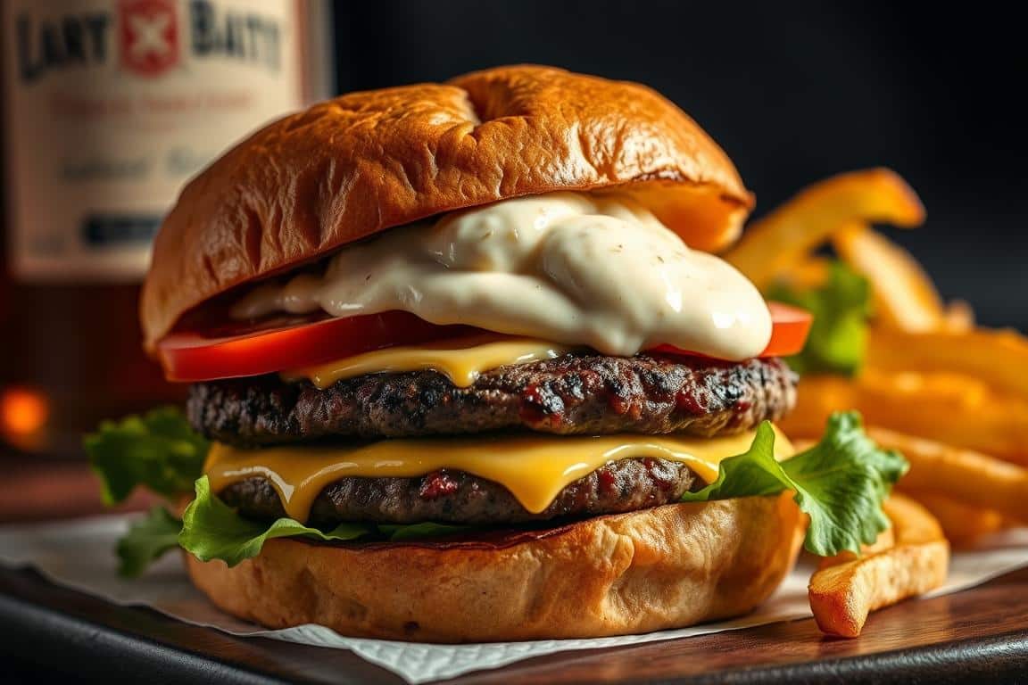 Gourmet whiskey-smoked gouda burger with roasted garlic cream sauce. Crafted for discerning home chefs seeking restaurant-quality results in 45 minutes with professional techniques and premium ingredients.